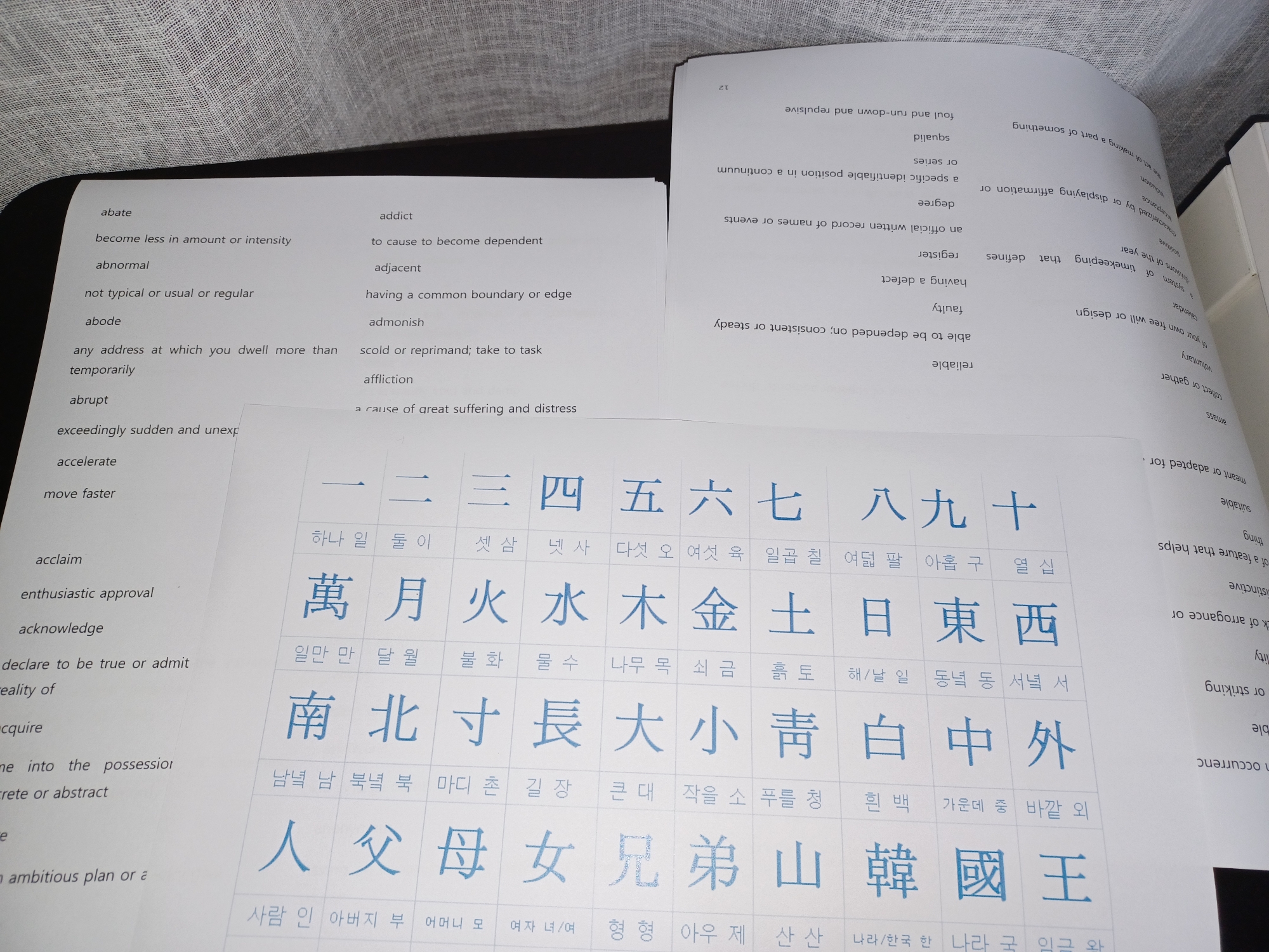 한자 8급 수준은 인터넷에 떠도는 자료가 많아서 대충 스크린 샷 해서 프린트해놓았고,
