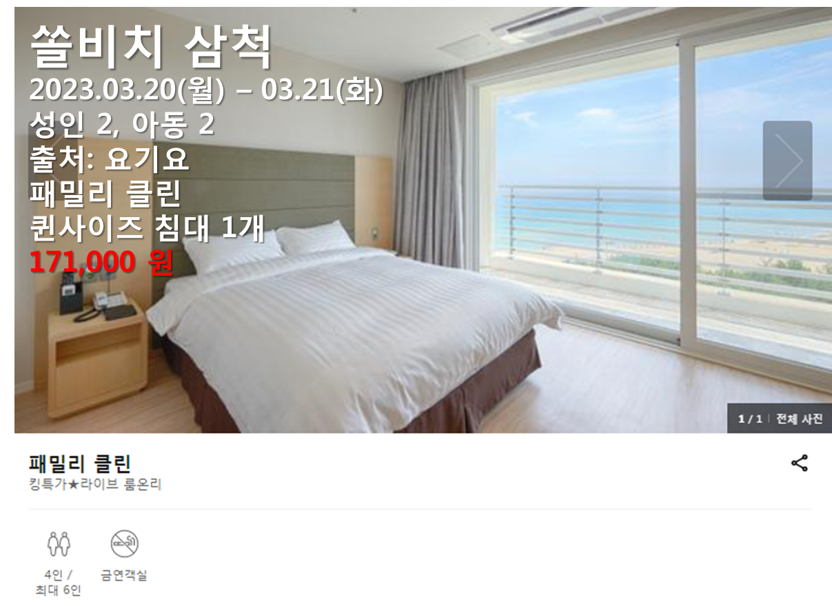 비교로 한국에서 대명리조트 계열사인 삼척 쏠비치에서 머물렀다고 봅시다.
