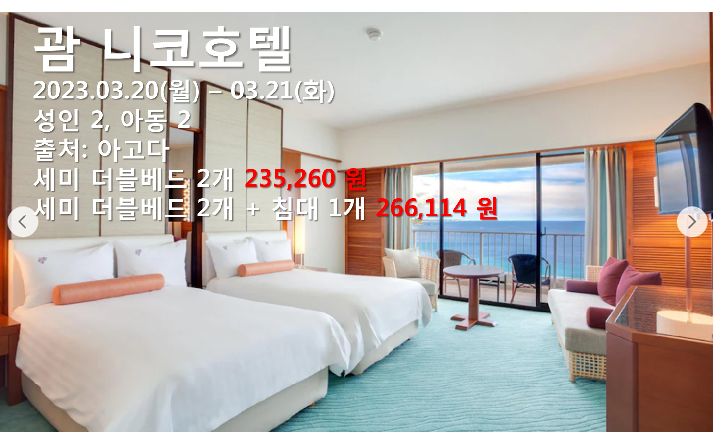 괌을 여행하는 동안 니코호텔에 1박에 20만 원 대에 머물렀습니다.
