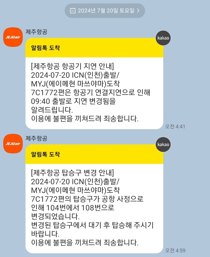 제주항공 인천 마츠야마 7C1772편 딜레이 입국 후기
