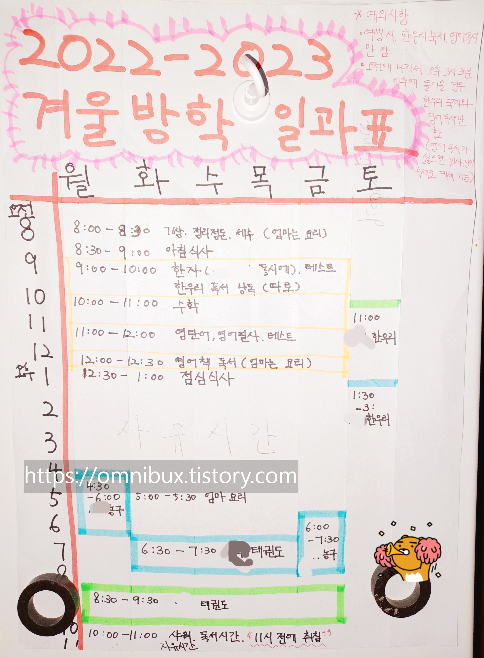 이렇게 해서 만든 방학 일과표는 다음과 같다.